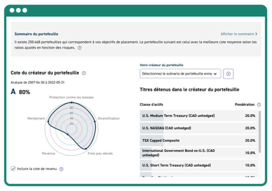 L’outil Créateur du portefeuille constitue un portefeuille de FNB qui répond à vos besoins de placement.