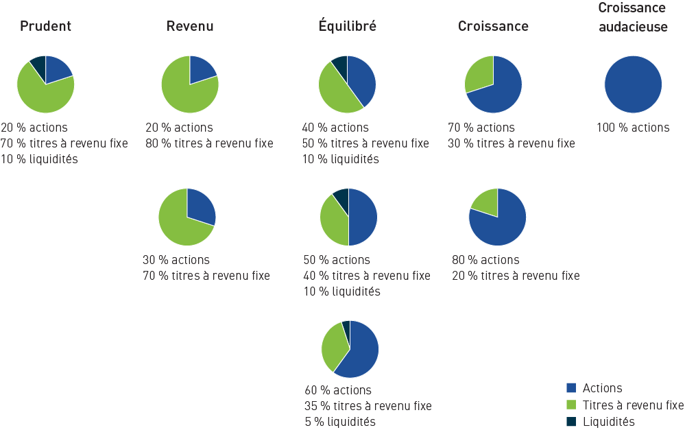 Les modèles de répartition de l’actif ci-dessus correspondent approximativement aux profils d’investisseurs décrits ci-dessous.
