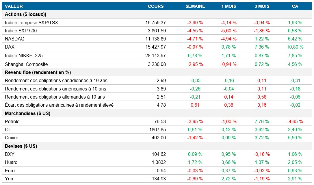 Pouls hebdomadaire des marchés - Semaine se terminant le 10 mars 2023
