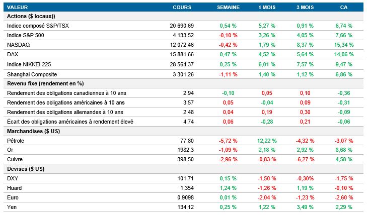 Pouls hebdomadaire des marchés - Semaine se terminant le 21 avril 2023