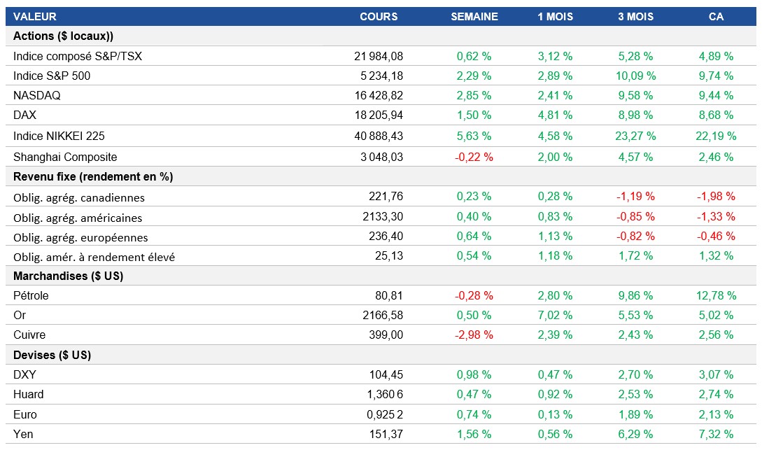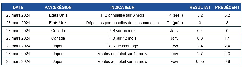 Pouls hebdomadaire des marchés - Semaine se terminant le 22 mars 2024