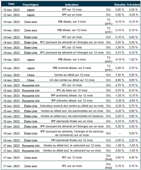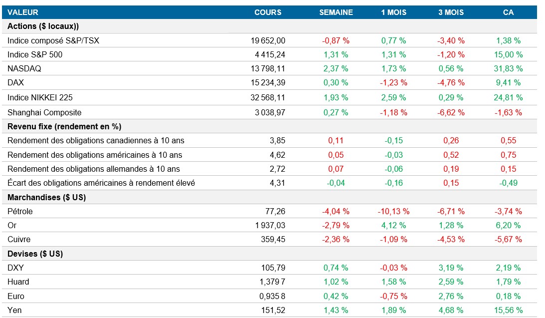 Pouls hebdomadaire des marchés - Semaine se terminant le 10 novembre 2023