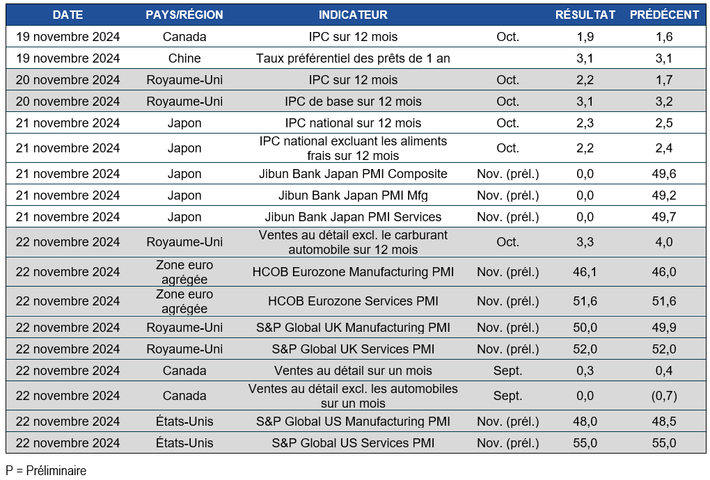 Pouls hebdomadaire des marchés - Semaine se terminant le 15 novembre 2024