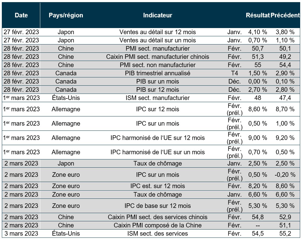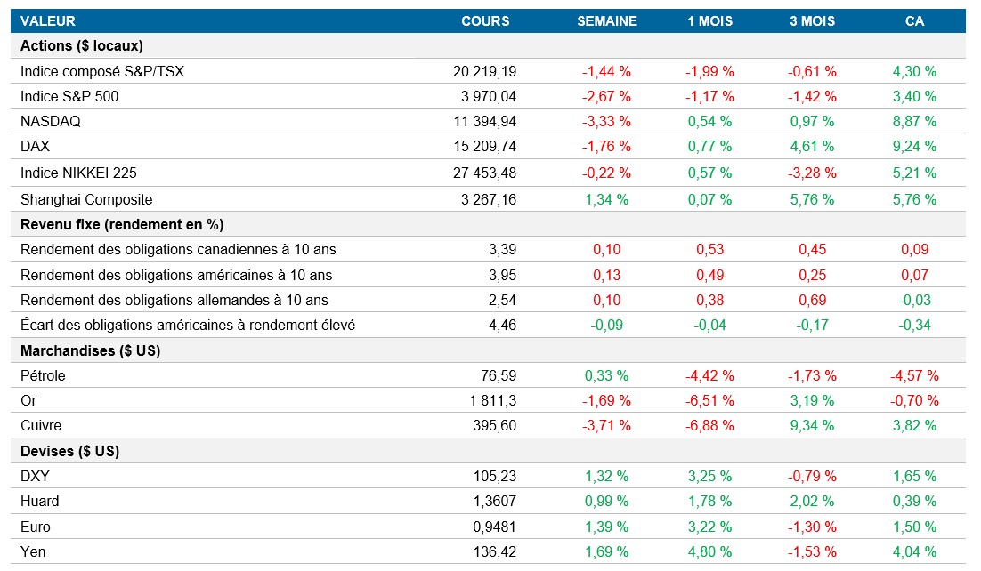 Pouls hebdomadaire des marchés - Semaine se terminant le 24 février 2023