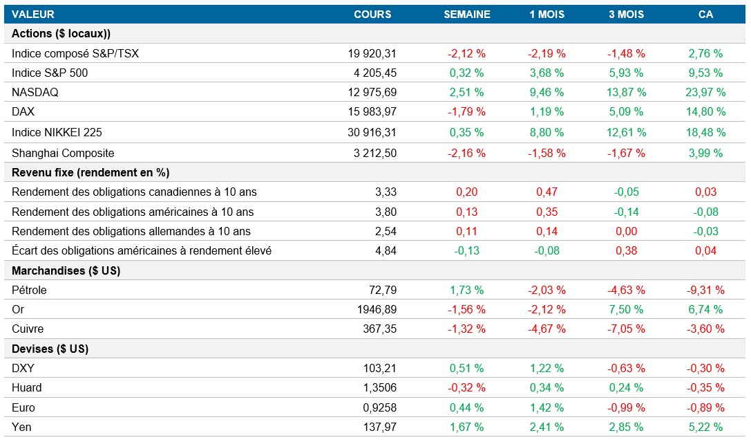 Pouls hebdomadaire des marchés - Semaine se terminant le 26 mai 2023