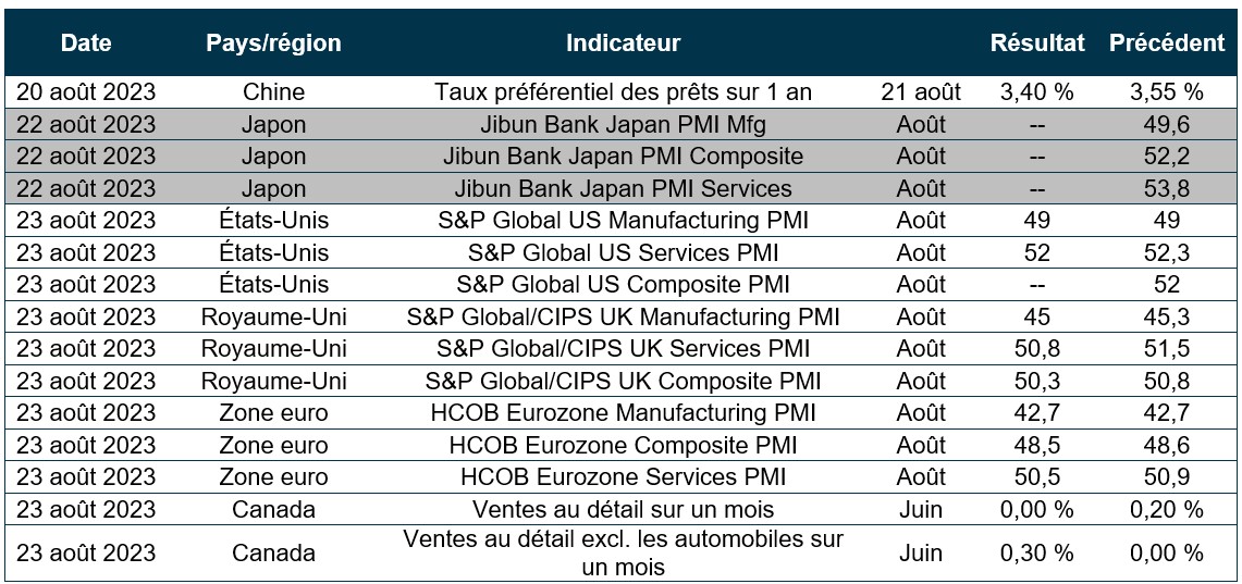 Pouls hebdomadaire des marchés - Semaine se terminant le 18 août 2023