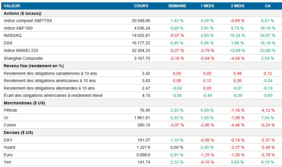 Pouls hebdomadaire des marchés - Semaine se terminant le 21 juillet 2023
