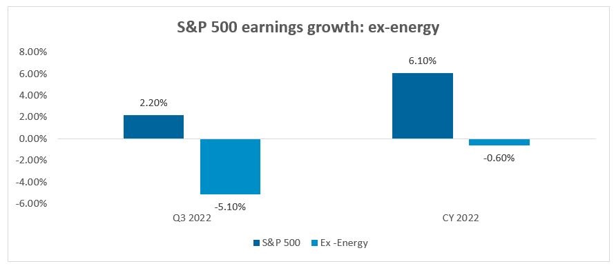For the whole year 2022, the index is expected to report a year-over-year decline in earnings of 0.6% excluding energy. rather than an increase of 6.1%. From Q2 2023 onwards, the Energy sector is projected to report year-over-year declines in earnings, detracting from the overall earnings growth.