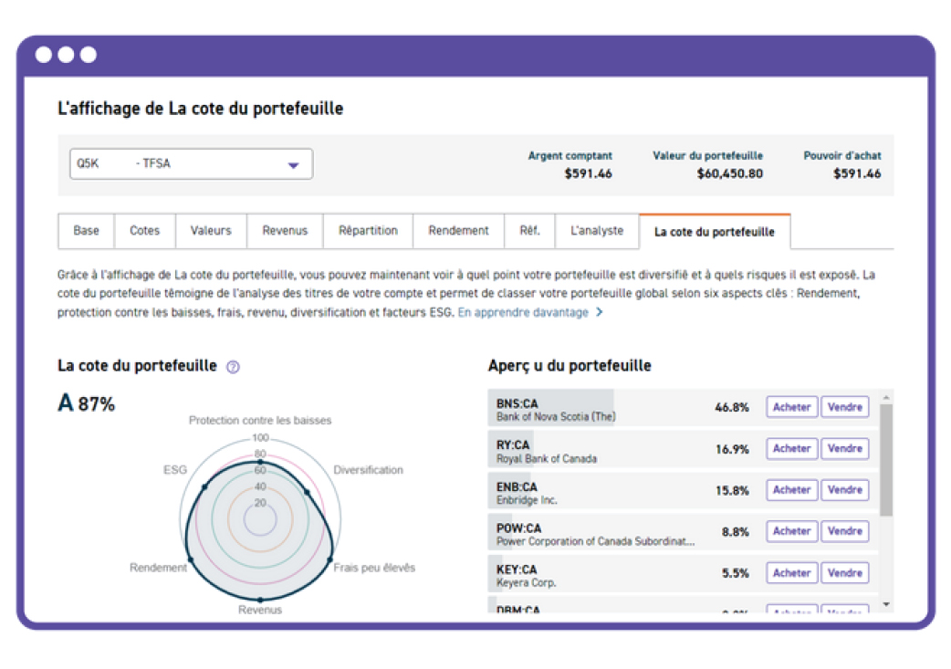 L’outil La cote du portefeuille vous donne une deuxième opinion sur votre portefeuille.