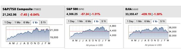 - Indice composé S&P/TSX – mesure le rendement des actions canadiennes et comprend environ 250 sociétés.