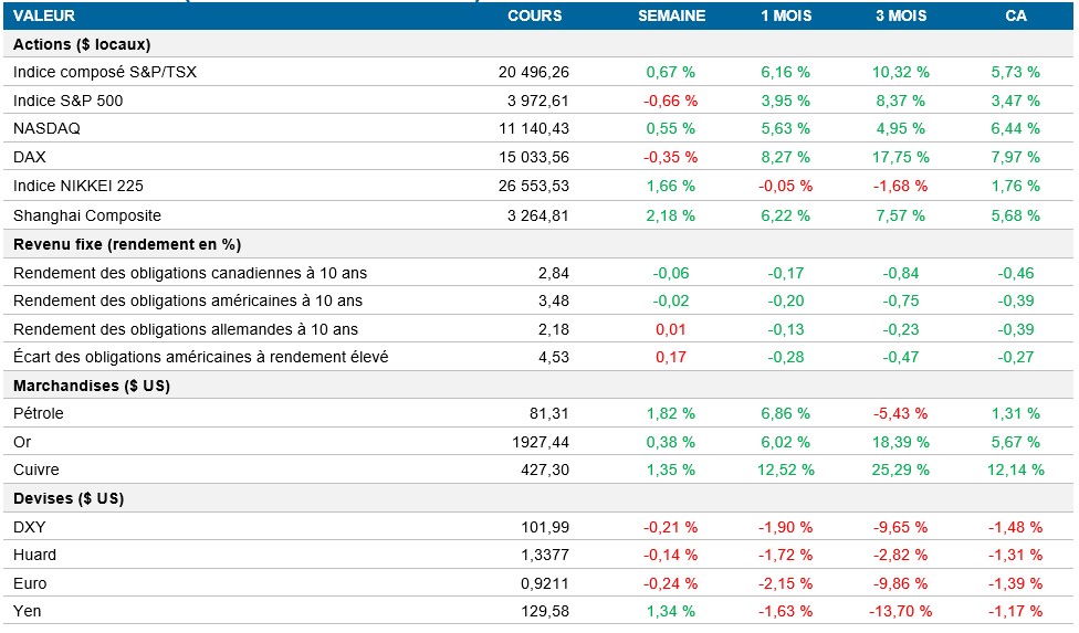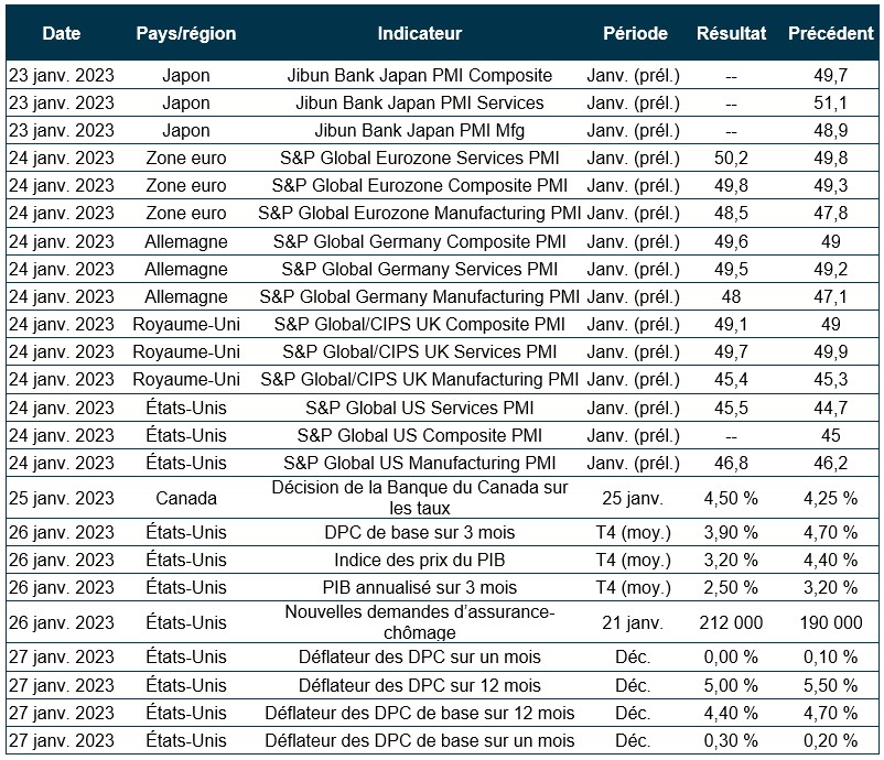 Pouls hebdomadaire des marchés - Semaine se terminant le 20 janvier 2023