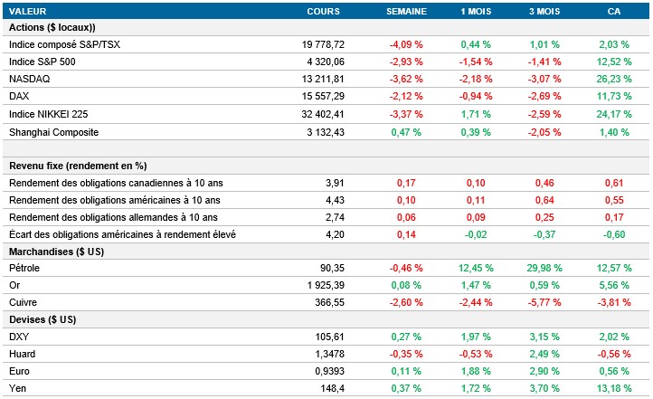 Pouls hebdomadaire des marchés - Semaine se terminant le 22 septembre 2023