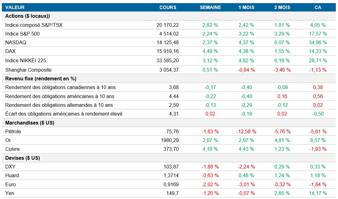 Pouls hebdomadaire des marchés - Semaine se terminant le 17 novembre 2023