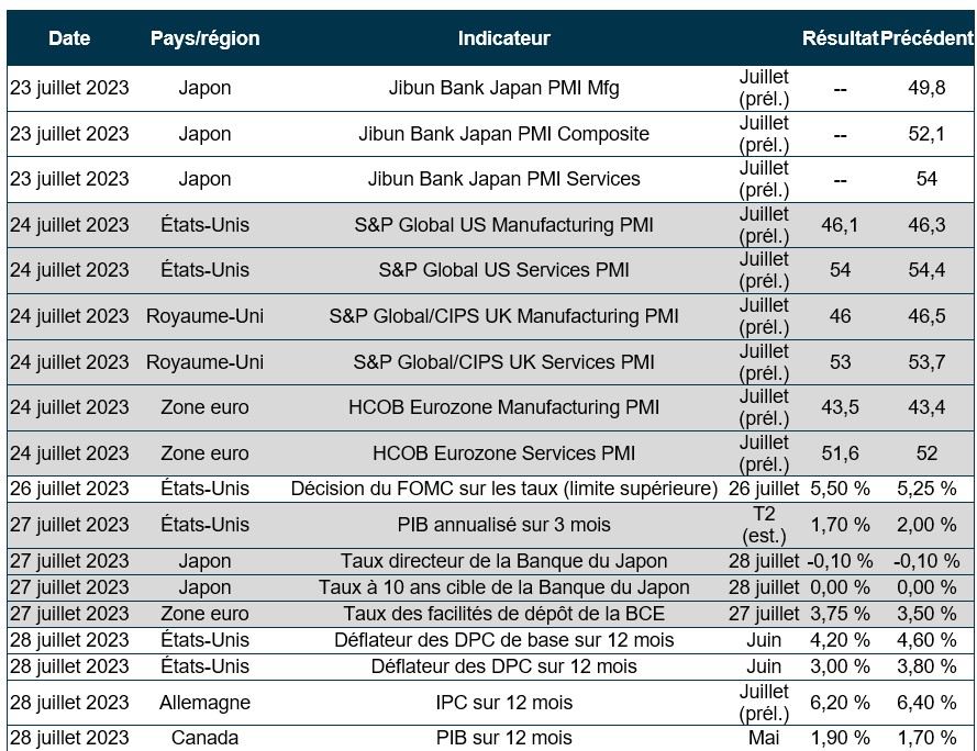 Pouls hebdomadaire des marchés - Semaine se terminant le 21 juillet 2023