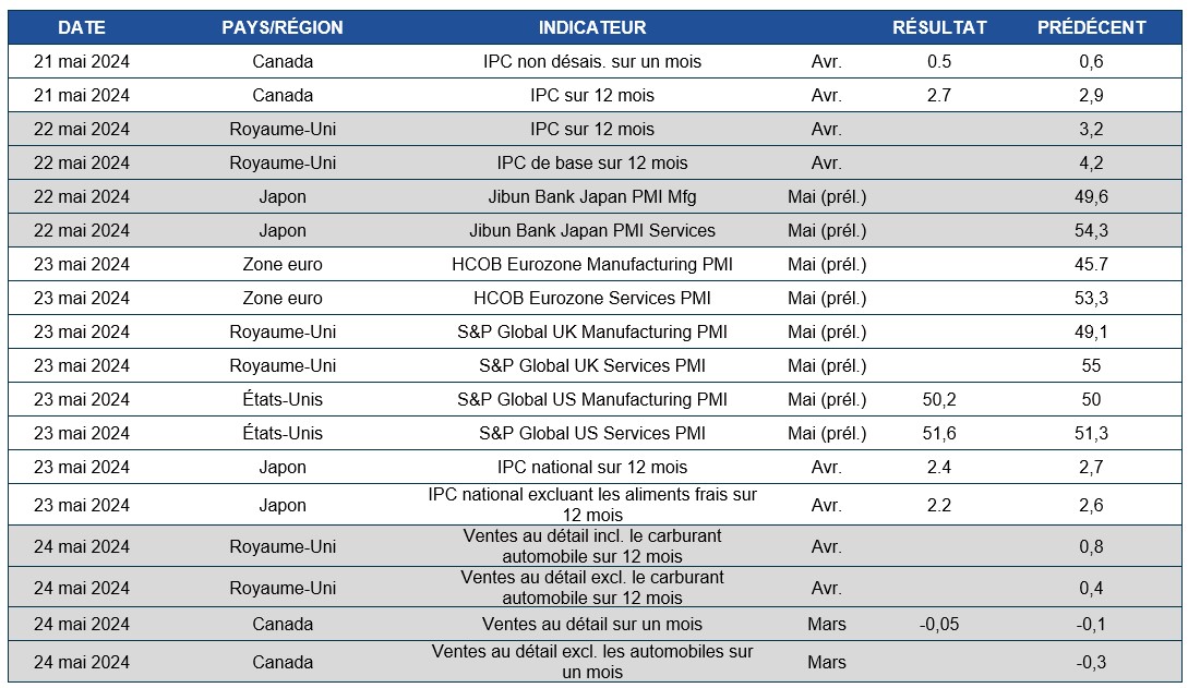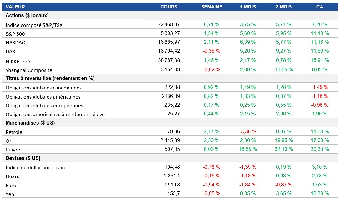 Pouls hebdomadaire des marchés - Semaine se terminant le 17 mai 2024