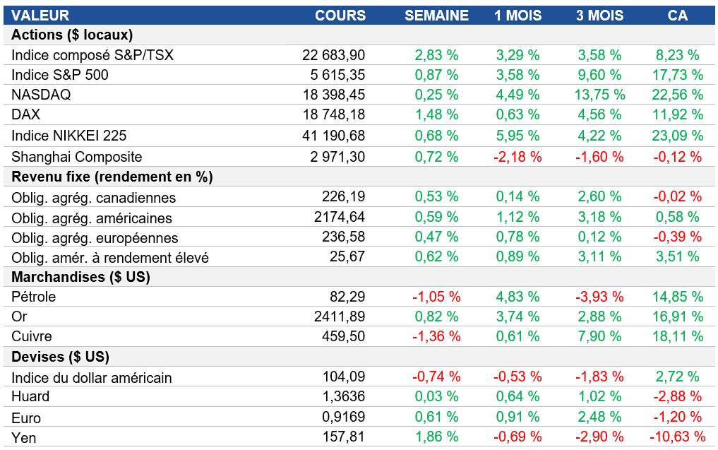 Pouls hebdomadaire des marchés - Semaine se terminant le 12 juillet 2024