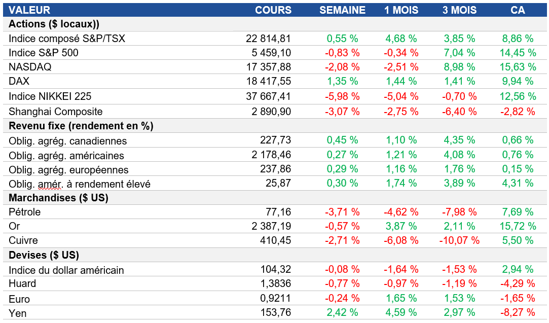 Pouls hebdomadaire des marchés - Semaine se terminant le 26 juillet 2024