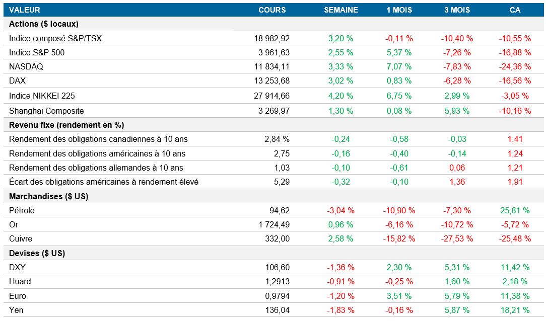 Pouls hebdomadaire des marchés - Semaine se terminant le 22 juillet 2022